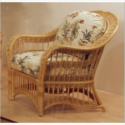 909-1315-NAT-C-RF-319 Fabric: Resort Life Multi Shown in belize cameo Features: -Traditional indoor rattan and wicker lounge chair. -Finished in natural color. -Includes cushion with choice of fabric in a variety of colors and patterns. -Fully assembled. -Woven wicker bindings. -Overall dimensions: 36'' H x 35'' W x 30'' D..../ St. Lucia Rattan Lounge Chair in Natural Finish Fabric: Resort Life Multi / Patio Recliner